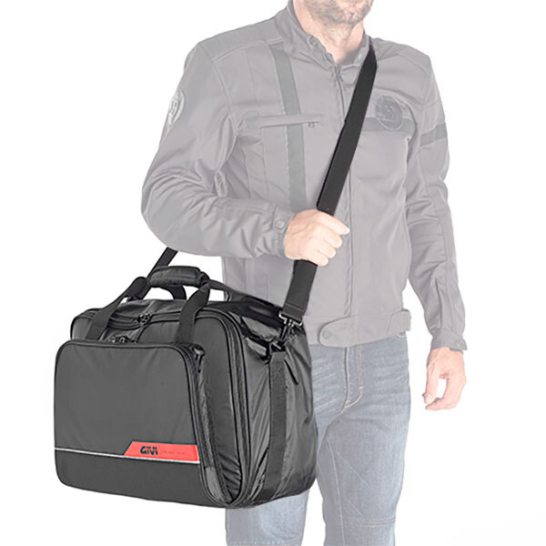 Déi praktesch bannenzeg Täsch vu Givi fir Trekker-Koffer mécht den Transport vun Ärem Gepäck méi einfach dank senge komplett gepolsterten a gefütterten Fächer.