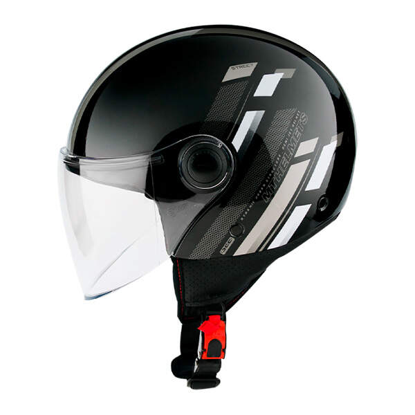 Déi spuenesch Mark vu Jet-Motorradhelmer MT bitt dat ultimativt Gefill vu Fräiheet, agewéckelt an engem modernen an ultraleichten Open-Face-Motorradhelmdesign wéi dësen MT Street Scope.