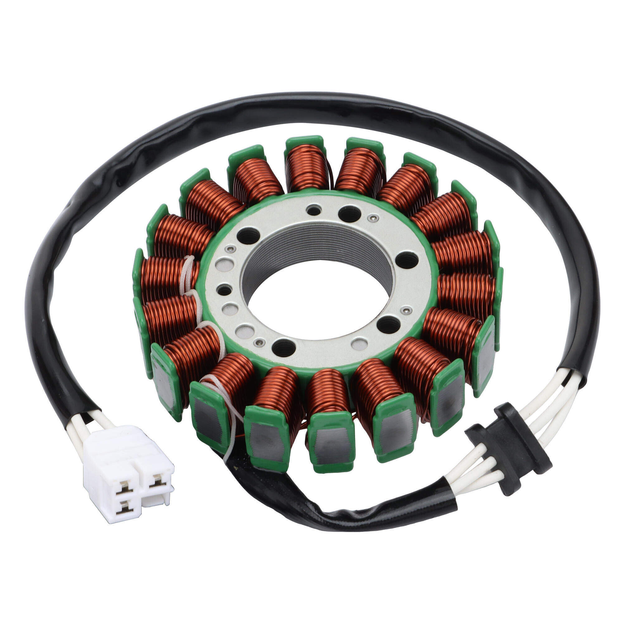 Dësen 18-polegen, dräiphasegen Stator ass kompatibel mat Mitsubishi Kawasaki Ninja 650 Modeller 2017-2023 an ass ideal fir déi, déi Qualitéit a Leeschtung sichen.